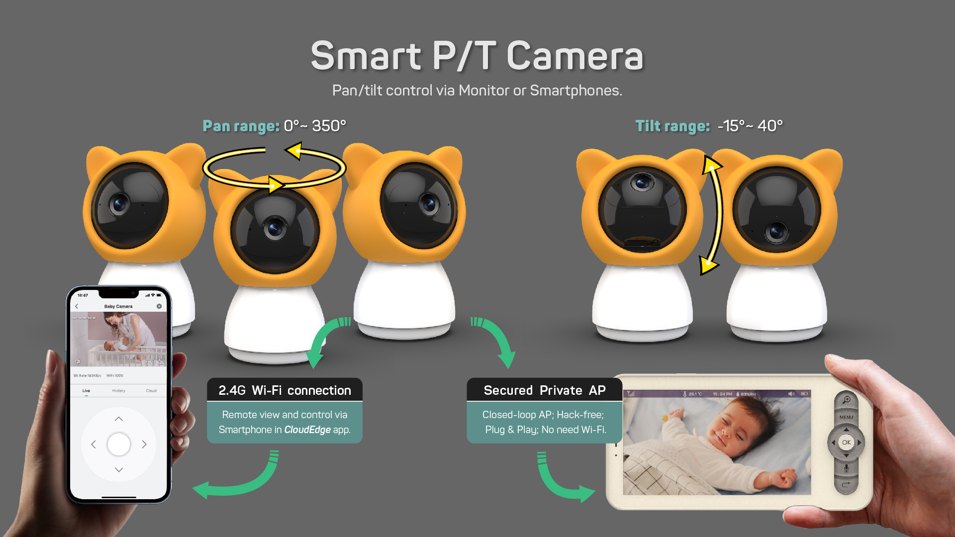 1080P WiFi Indoor PT Camera + 5″ LCD Monitor Screen: